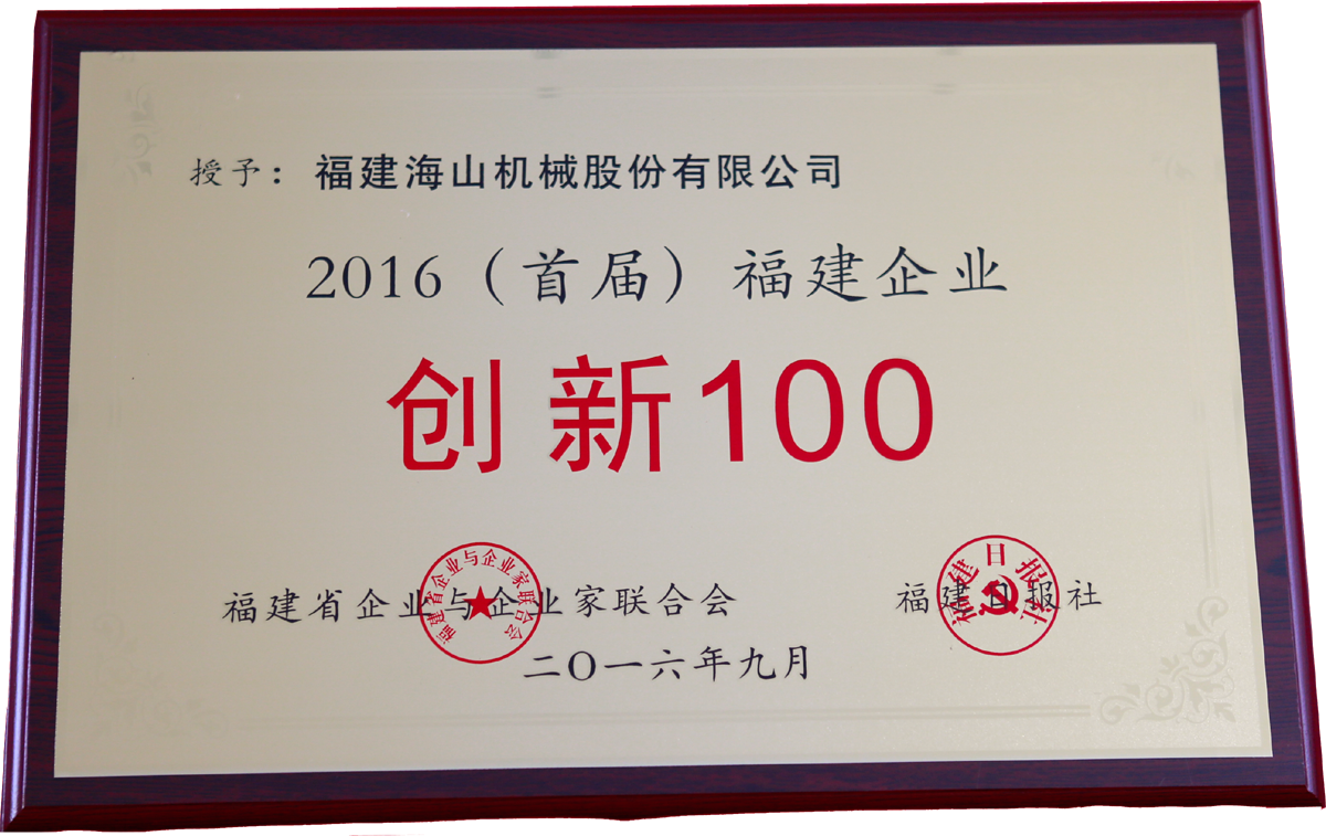 2016(首屆)福建企業(yè)“創(chuàng)新100”名單頒發(fā) 海山機械上榜