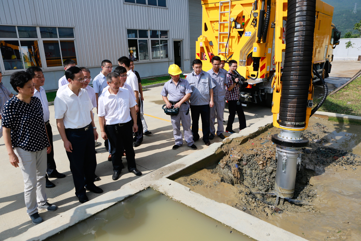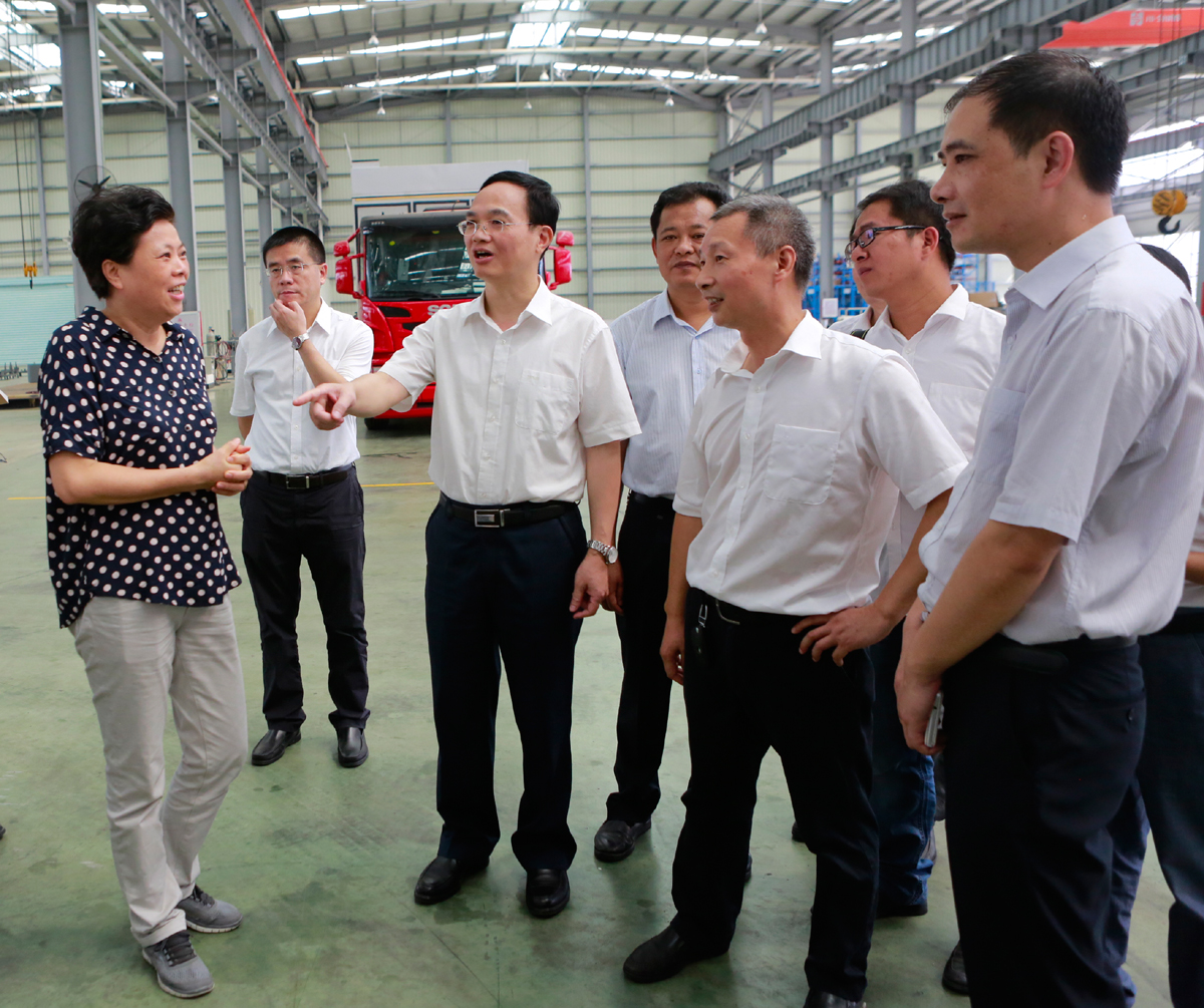 在裝配線上,董事長林愛萍指著一輛剛剛涂裝完的銀灰色車輛向林寶金書記介紹說,“這是海山新下線的道路污染清除車?!傲謱毥鹪敿?xì)詢問了該車的性能和市場銷售情況,在了解到該車能徹底清除道路污染物,很受市場歡迎時,饒有興致地向林愛萍說,我給你推薦另外一個營銷推廣思路。林愛萍聽后表示,我們一定好好研究和落實書記的建議。
