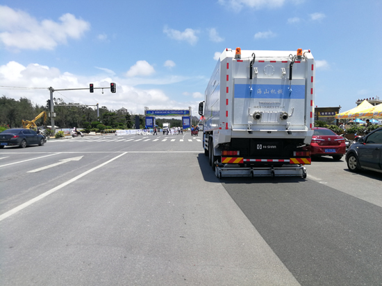? 公路賽事路線近20公里,為了讓騎行者更舒適的享受賽事,海山機(jī)械道路污染清除車對(duì)賽道主要路段進(jìn)行深度清潔,可對(duì)道路縫隙中各種污染物完全吸收,作業(yè)后道路一塵不染,無(wú)任何水漬,不需要噴灑水和噴霧,徹底解決清掃車、灑水車作業(yè)后造成的二次污染,并從源頭遏制道路揚(yáng)塵。